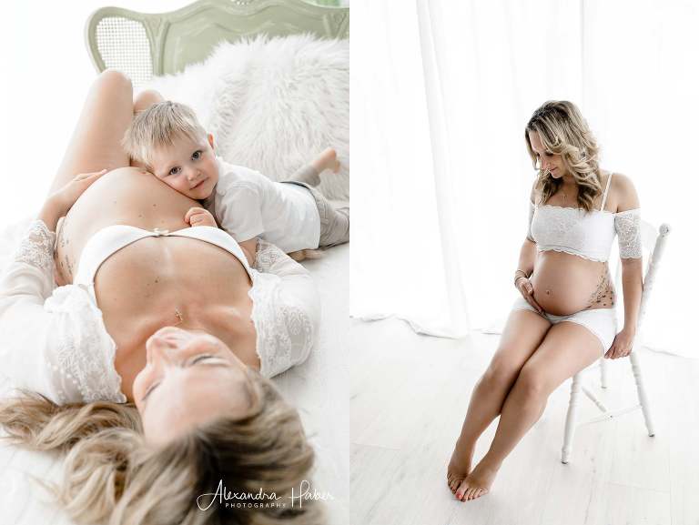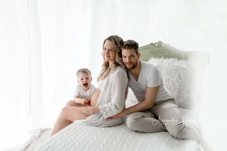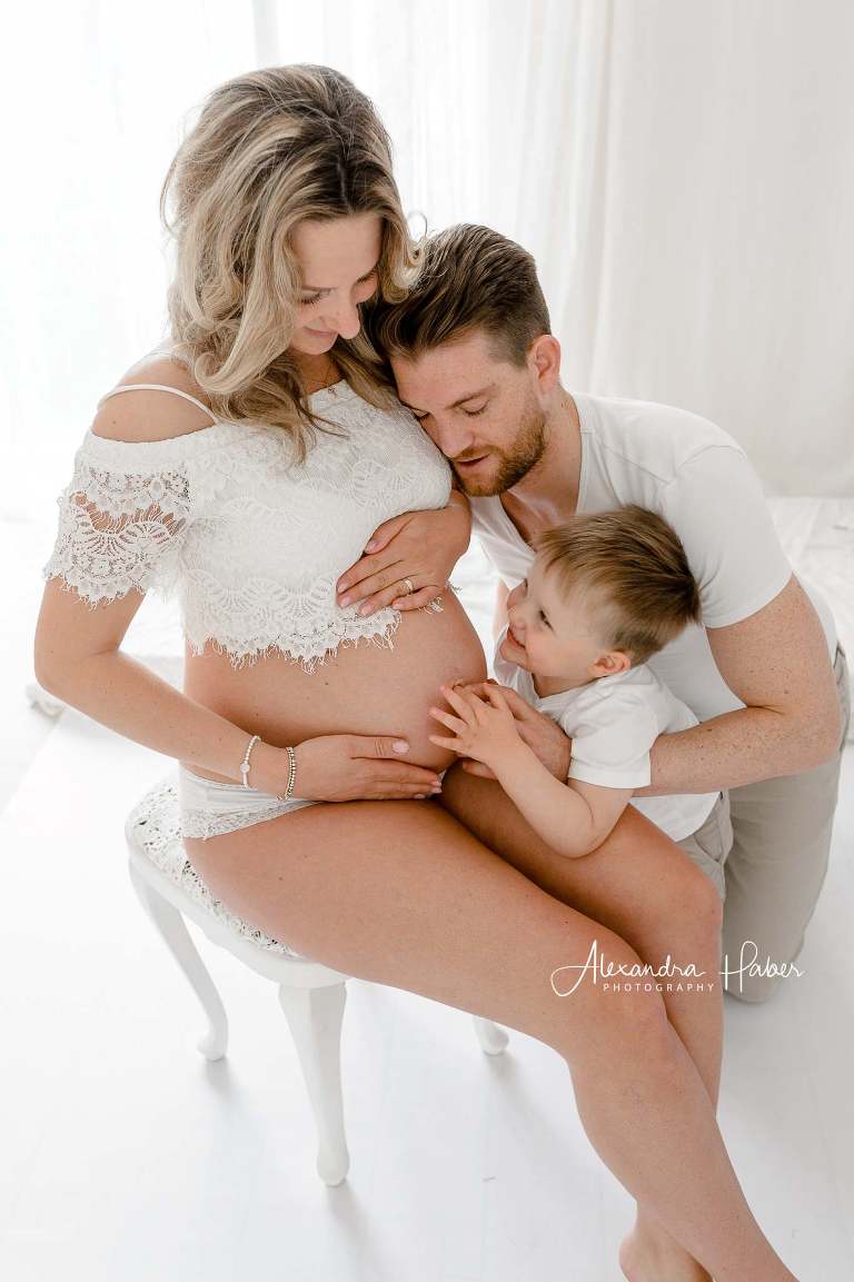Schon nächste Woche kommt mich der kleine Bauchbewohner besuchen, um die ersten Neugeborenenfotos festzuhalten. Aber vorher habe ich mich mit dieser kleinen Familie in meinem Atelier getroffen, um schlichte & luftige Bilder als Andenken an die Kugelzeit anzufertigen.