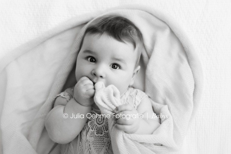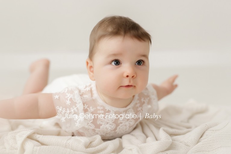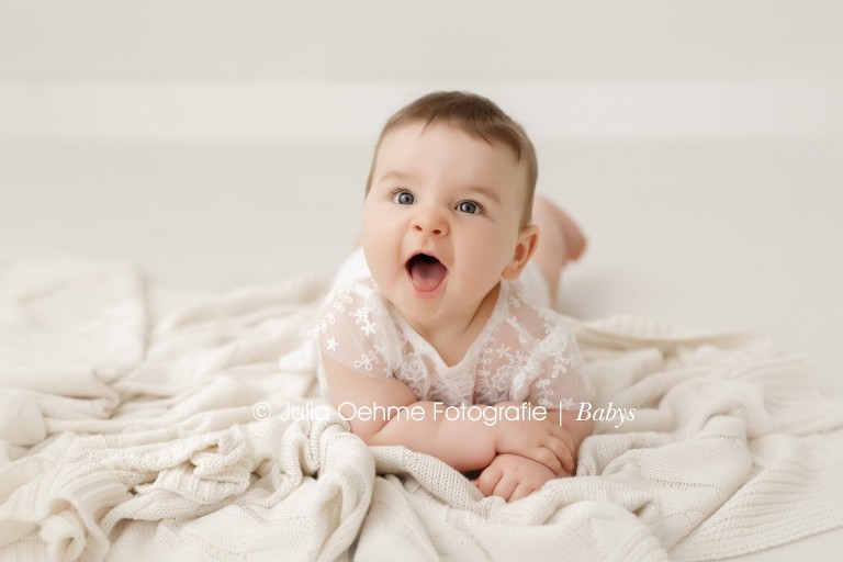 Ist es bei euch auch schon so ungemütlich grau, kalt und nass? Was gibt es da schöneres als ein wenig Sonne im Herzen!? Die soll euch heute das Lachen der süßen Eva zaubern! Ein halbes Jahr war die kleine Maus alt als sie mich im Fotostudio in Leipzig besucht hat. Ich liebe es wie wahnsinnig viel die kleinen Mäuse in diesem Alter lachen. Und wenn sie nicht lachen, dann haben sie diesen zuckerüßen ernsten Gesichtsausdruck und schauen einen mit ihren großen Baby-Strahleaugen an. Beides ist einfach zu Knutschen!